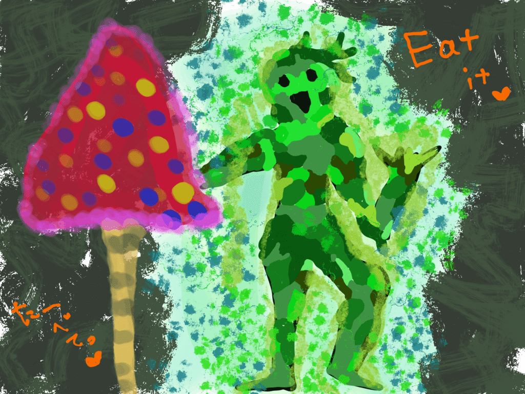 意識を取り戻して視界が徐々に暗闇に慣れていくと、私は仄かな緑がかった光に囲まれていることに気づいたの。その光を放つ正体はね、地底人よ。彼らの皮膚には光る苔のようなものが生えている。まるで不思議なオーラを纏っているみたい。それは明るすぎなくて、繊細で心地よい光。